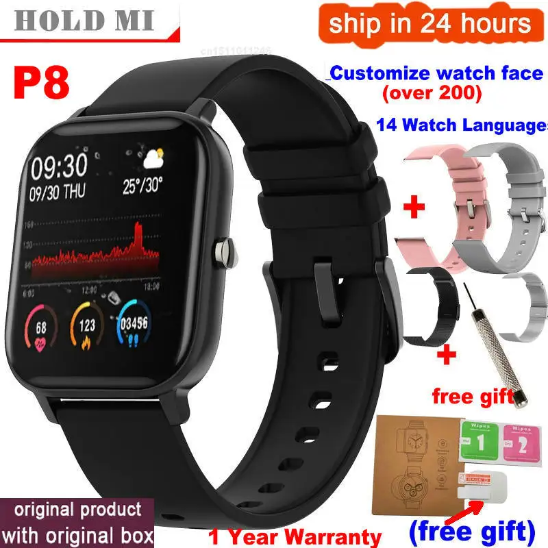 Name: Reloj inteligente P8 P9 de 1,4 pulgadas para Android IOS, reloj inteligente completamente táctil con control de la presión sanguínea y para hombre y mujer